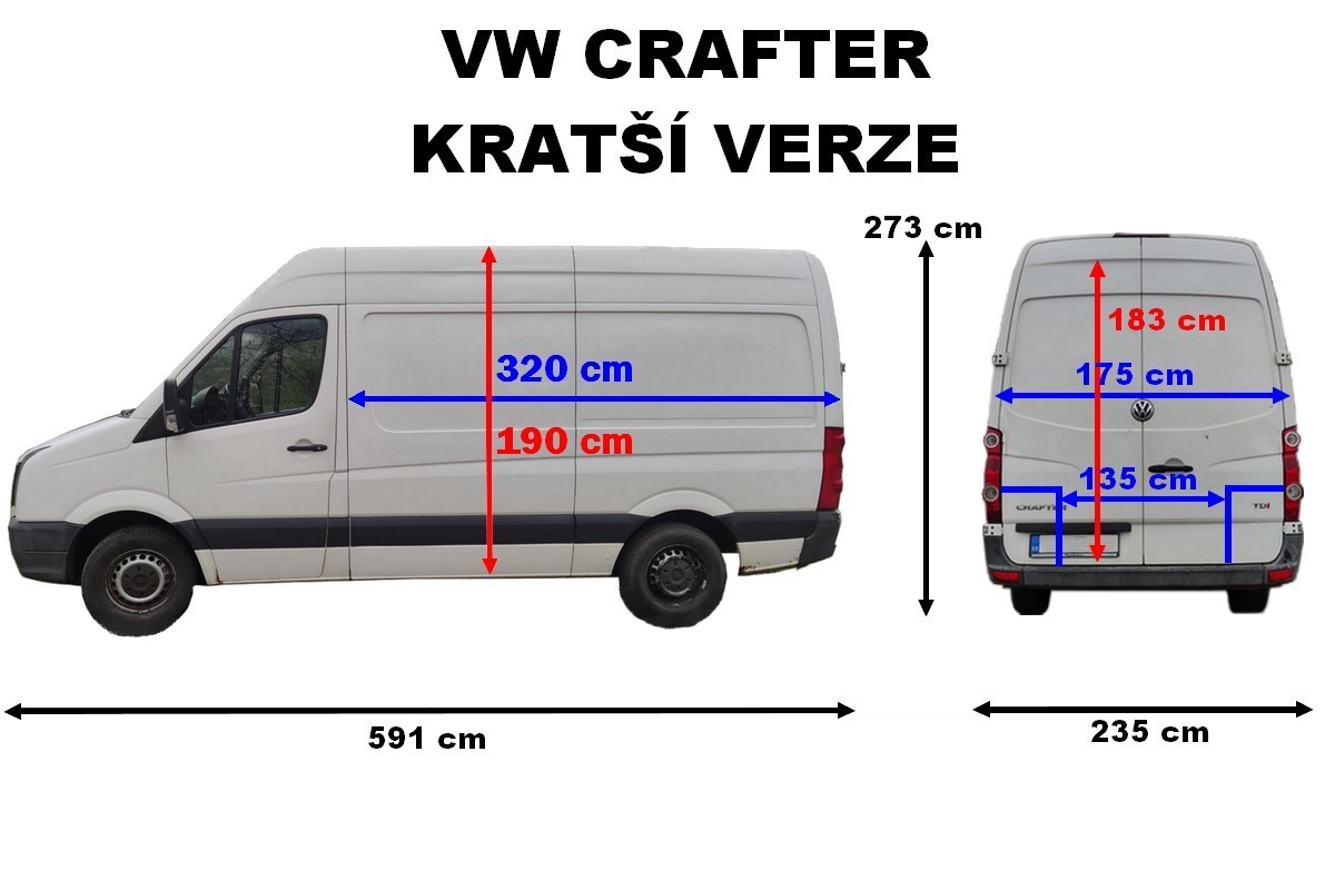 VOLKSWAGEN CRAFTER - kratší verze (rozměry viz obr.)