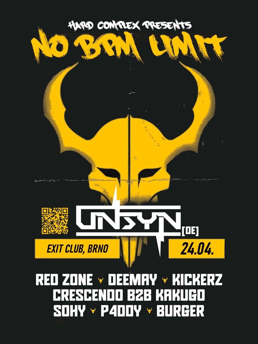 🇩🇪 UNSYN - Německý uptempo producent přiváží svůj nekompromisní Birtempo sound poprvé do ČR! Hrál na festivalech jako Tomorrowland, Harmony of Hardcore nebo So W'Happy a jeho track Let's Go se Sandy Warez a DRS se objevil v Masters of Hardcore Top 100