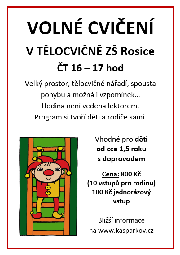 Spousta místa na běhání, skákání, kotouly... Přijďte si dětmi vypustit přebytečnou energii do tělocvičny ZŠ Rosice