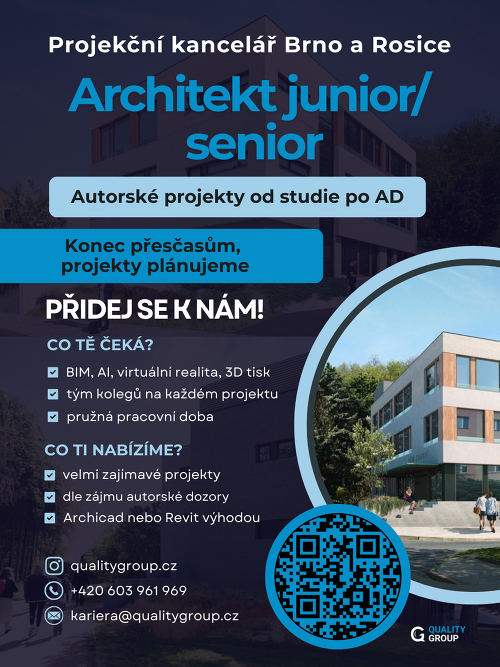 V týmu Quality Group v Rosicích u Brna a v Brně rozšiřujeme tým. Hledáme kolegu, který nechce jen sedět u výkresů, ale chce vidět své nápady růst. Nabízíme prostředí, kde se nehasí požáry, ale tvoří. Kde místo razítkování faktur nasadíte brýle pro virtuální realitu.