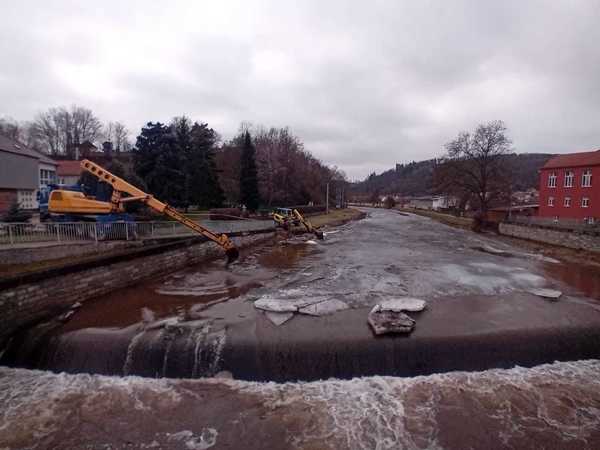 Poblíž Oslavan zasahovala těžká technika. V řece drtila led, který může tvořit nebezpečnou bariéru