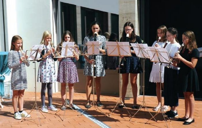 V úterý 3. září 2019 se dveře nové budovy otevřely a hosté se začali scházet. Po úvodních slovech starosty města Rajhradu Mgr. Františka Ondráčka a ředitelky naší školy MgA. Dagmar Bradové si všichni přítomní slavnostně přiťukli skleničkou sektu na všechny, kteří budou ve škole pracovat, učit se a tvořit. V průběhu odpoledne jsme vyslechli řadu hudebních vystoupení, tanečníci se nám předvedli v novém sále, zájemci z řad rodičů si mohli celou školu prohlédnout.