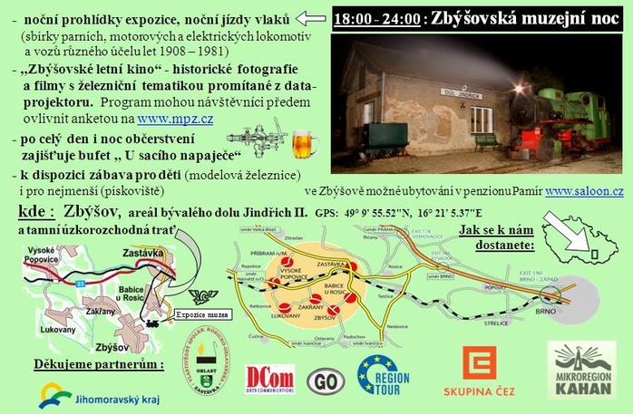 V sobotu 21. 5. 2016 se ve Zbýšově od 18:00 koná také Muzejní noc. Těšit se můžete na noční prohlídky expozic, noční jízdy vlaků, zbýšovské letní kino a zábavný program pro děti.